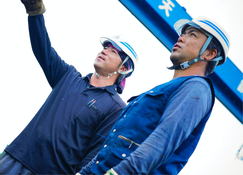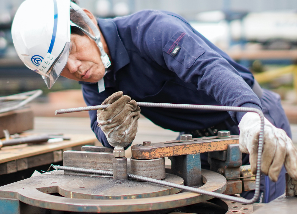 長年にわたり、鉄筋加工・組立を本業としてきた技能工たちが、経験によって培った技術と、現場に合わせた施工により柔軟に対応。